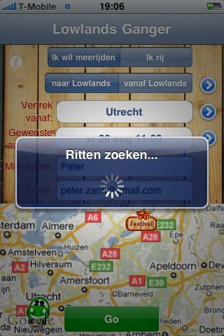 Door de slordige taalfoutjes en de ‘kriegelige’ interface maakt Festival Ganger (nog) geen beste indruk. Daarnaast staat of valt de app met het aantal gebruikers; als er slechts drie aanmeldingen zijn en die willen alle drie ‘meerijden’, dan heb je er niets aan. Toen ik het probeerde waren er nog geen andere festivalgangers, maar Lowlands is natuurlijk nog relatief ver weg om nu al een carpool te plannen.