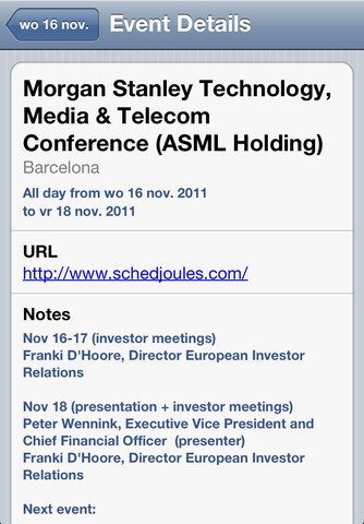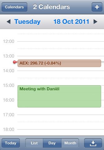 Waarom zou je je kalender willen vervuilen met de aandelen info als je een (bijna real time) Stock ticker in je iOS5 widgets hebt?