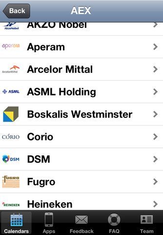 Elk kwartier de laatste AEX-stand in de kalender van je iPhone én de data waarop de belangrijkste bedrijven van de AEX en AMX hun kwartaalcijfers presenteren. Dat doet FinCals, een jonge applicatie van Joules Media. Het Nederlandse bedrijf legt zich toe op agenda-toepassingen voor de iPhone en kwam eerder al met Tour 2011, Weerkalenders en VoetbalCals. FinCals heeft hetzelfde principe: je installeert de app, activeert je gewenste kalenders en verwijdert de app weer.