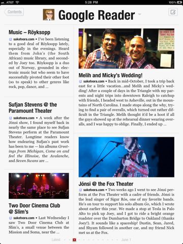 Een andere belangrijke toevoeging is de mogelijkheid om te synchroniseren met Google Reader. Er zijn al veel applicaties die dat als belangrijkste functie hebben, maar in Flipboard was het tot nu toe niet mogelijk. Met deze update kun je nu ook alle Google Reader-feeds, mappen en items die door vrienden zijn gedeeld in de applicatie bekijken. Vanuit de applicatie kun je een ster toevoegen, een artikel delen of een reactie plaatsen. Ook nieuw is uitgebreide ondersteuning voor foto’s en video’s van Flickr, waaronder de fotosteam, favorieten, groepen, foto’s van vrienden en interessante foto’s van de dag.
