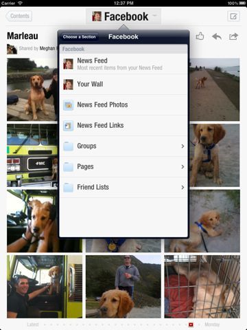 FlipboardHet social magazine Flipboard, door Apple eerder nog uitgeroepen tot “iPad-app van het jaar”, heeft een forse update gekregen. Het was al mogelijk om content uit je Twitter- en Facebook-accounts te verzamelen in een magazine-achtige interface. Met deze update is de ondersteuning verder uitgebreid met meer ‘sociale functies’. Zo kun je nu bladeren door Facebook-groepen en fanpagina’s evenals foto’s van je feed. Ondersteuning voor Twitter is uitgebreid met de mogelijkheid om door je tweets, favorieten, @replies en lijsten te bladeren. Ook kun je nu vanuit de applicatie foto’s, updates en pagina’s delen met je sociale netwerken.