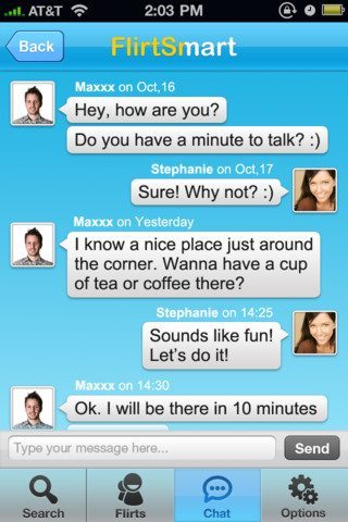 FlirtSmart is een nieuwe Nederlandse dating-app voor de iPhone en iPod touch. De gratis applicatie laat je flirten en chatten met mensen die zich hebben aangemeld en zich in je omgeving bevinden.