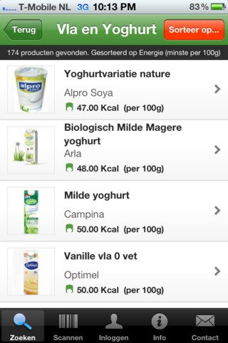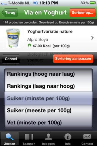 - Je kan de lijst naar voedingswaarden sorteren