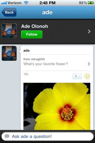In het tabblad Profile zie je meteen de vragen die gesteld zijn en de antwoorden die je hebt gegeven. Dat wordt natuurlijk een veelbekeken sectie, ijdel als je bent. De laatste van de tabbladen is Friends. Daar staat een lijst met mensen die je volgt, van wie je ook alle vragen en antwoorden kan bekijken. Als je daar natuurlijk behoefte aan hebt.