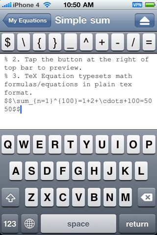 TeX Equation werkt zowel op de iPhone als de iPad en biedt je de mogelijkheid om formules in te voeren middels de opmaaktaal TeX. Je hoeft geen held in de TeX-taal te zijn om de applicatie te kunnen gebruiken, maar als je het nog nooit hebt gebruikt, wordt het wel lastig.