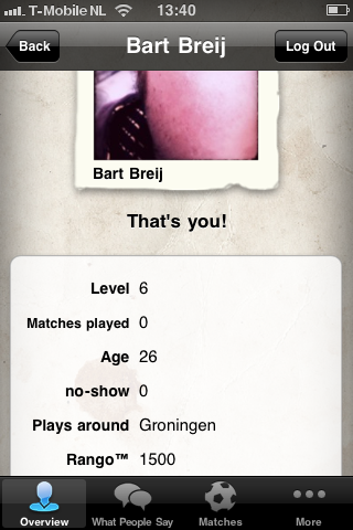 Één test gedaan en niet erg tevreden oa sommige dingen in Italiaans, als app locatie van venue verkeerd heeft kon ik die niet handmatig wijzigen, maar meest vervelend: kon datum en tijd van de aangemaakte match niet meer veranderen of zelfs de hele match niet meer cancellen. Naast dat bij een invitatie van een speler de Connection Failed de gehele app niet erg gebruikersvriendelijk is. Wel een leuk en creatief idee.