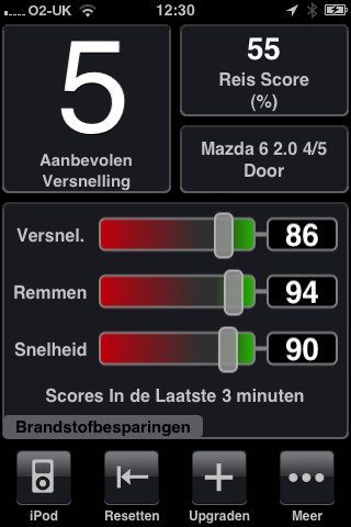 En dan tijdens het rijden steeds naar je iPhone kijken voor precÃes het juiste moment van schakelen? Lijkt me niet bevordelijk voor de verkeersveiligheid…..