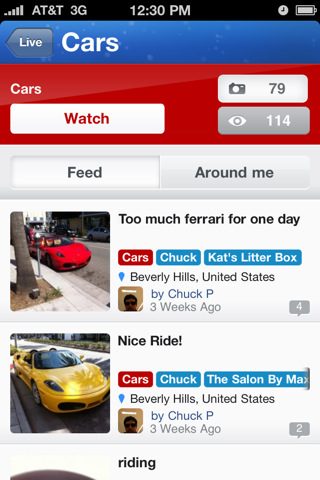 Een nadere blik op de applicatie wijst uit dat Mobli minder te maken heeft met Instagram dan het lijkt. Mobli draait de structuur van Instagram in feite om. In de populaire kleurenfilter-app toon je foto’s aan vrienden die je hebt verzameld in het netwerk en kun je aan de hand van hashtags bij de foto’s meer bezoekers naar je toe trekken. In Mobli koppel je meteen categorieën aan je foto en wordt de foto voor alle gebruikers zichtbaar die in die categorieën kijken. Met de Live-knop op de hoofdpagina van de applicatie zie je bovendien alle foto’s in alle categorieën die net zijn geüpload. De lijst ververst zich realtime. Het andere uiterste is zoeken op foto’s die in de buurt zijn genomen. Omdat Mobli nog niet is aangeslagen in Nederland, staan daar nog nauwelijks resultaten.