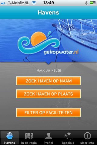 Er is vanochtend een nieuwe Nederlandse applicatie uitgekomen die goed van pas kan komen bij de medelanders die de vakantie willen besteden op een boot. GekOpWater.nl biedt een overzicht van havens in Nederland en toont ook faciliteiten in de buurt van de havens. Onder meer hotels, eetgelegenheden, banken en verenigingen die handig kunnen zijn worden getoond op een kaart. Ook kun je zien welke mogelijkheden de haven zelf heeft, zoals een bootreparatie of een vuilwatertank.