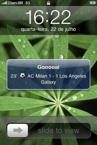 Gooooal 2009 laat door middel van een pushbericht weten wanneer er ergens een doelpunt wordt gescoord.