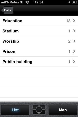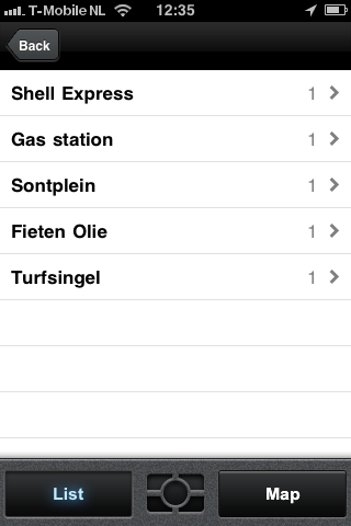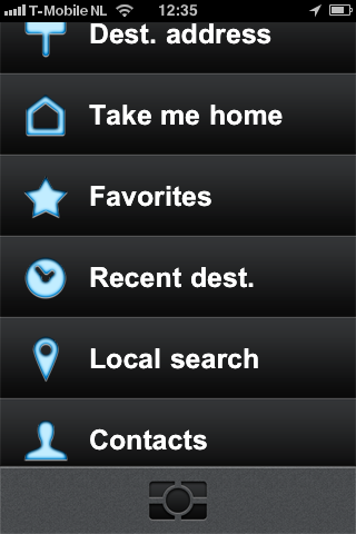 Een grijs hoofdmenu verwelkomt je in de applicatie, die nu in de horizontale en verticale stand van de iPhone te gebruiken is. In het midden prijkt een grote navigatieknop, daarom heen staan Map (de kaart van de plek waar je nu bent), Share/Help (inloggen en helpen met foutverbeteringen), Upgrades (kaarten kopen van bijvoorbeeld Nederland, Europa of de gehele wereld) en warempel: Category. Die herbergt een menu met nuttige plekken zoals benzinepompen, restaurants, kroegen, hotels en meer. Kies een menu en je ziet een lijst van de namen van de plekken die in de buurt zijn en die je zoekt. Helaas zie je de verschillende punten niet tegelijk op de kaart. Dus moet je eerst eentje in de lijst selecteren en dan voor de optie kiezen om erheen te navigeren. Je kan een locatie overigens ook toevoegen aan favorieten. In het Category-hoofdmenu bepaal je of alle nuttige plekken in een straal van 2, 5 of 10 kilometer worden weergegeven.