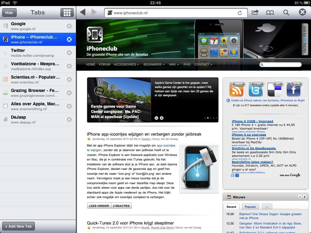 Het is me een raadsel waarom al die browsers die 1 of 2 trucjes aan Safari toevoegen een heuse review verdienen, maar iCab Mobile hier nog nooit aan bod is gekomen.
