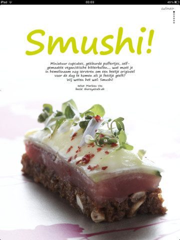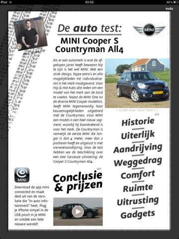 In de uitleg vooraan het blad wordt al uitgelegd hoe je het blad leest. Er zijn tekstkolommen waarin een scrollbalk staat, waarbij je kan zwiepen met je vingers binnen de kolom om verder te lezen. Met de bolletjes rechts bovenaan de pagina zie je uit hoeveel pagina’s een artikel bestaat. Dan veeg je de hele pagina naar boven om bij de volgende te komen. Een nieuw artikel begint altijd rechts van het huidige. Het is een doodsimpele navigatie die veel te weinig magazines voor de iPad gebruiken. Naar onder voor meer, naar rechts voor de volgende. Praktisch en eenvoudig in gebruik.