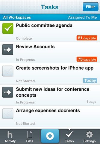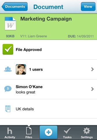 Huddle is een zakelijke toepassing die zich al enige tijd opwerpt als hét goedkope en eenvoudige alternatief voor Sharepoint, Microsofts dienst waarmee je documenten en taken online aan elkaar kan voorleggen. Huddle v2 voor de iPhone en iPod touch doet hetzelfde: medewerkers stellen hun documenten online beschikbaar in een lijst en degenen die er wat over te zeggen hebben, kunnen ze meteen in de app lezen en er commentaar over achterlaten. De applicatie is gratis te gebruiken.