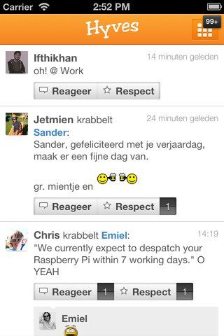 Het Nederlandse sociale netwerk Hyves – naar eigen zeggen nog altijd goed voor ruim één miljoen bezoekers per dag, heeft haar iPhone-app een grote update gegeven naar versie 5.0. Die geeft de applicatie een compacter, strakker uiterlijk. Met name de WWW-timeline met gebeurtenissen van vrienden en het hoofdmenu zijn onder handen genomen. De wijzigingen zijn niet bij iedereen in goede aarde gevallen. De nieuwste versie heeft een desastreuze gemiddelde App Store-beoordeling. Gebruikers klagen erover dat de app trager is geworden en dat foto’s niet meer in te zoomen zijn.