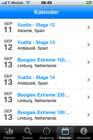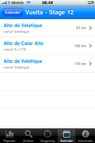 Je kunt verder ook zoeken in de database, om heuvels zoals de Keutenberg, Eijserenbosch of Gulperberg op te zoeken. Het is zelfs heel makkelijk om heuvels op te zoeken van rondes die nu aan de gang zijn, zoals ronde 12 van de Vuelta op dit moment. In de kalender is een overzicht te zien wanneer elke ronde zal plaatsvinden. Eenmaal daarop geklikt zie je (helaas) maar één heuvel van de betreffende ronde of etappe.
