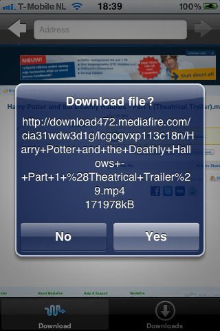 Klik je op een link naar een bijvoorbeeld een mp3-tje, dan opent niet direct de mediaspeler van je iPhone, maar krijg je de vraag of je het bestand wilt downloaden. Als je het bestand downloadt, dan wordt het opgeslagen in de downloads-sectie van de applicatie, waar je het vanaf dan offline kunt raadplegen.