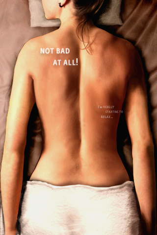 Op de achtergrond klinkt een relaxt muziekje en tijdens het aanraken van het scherm hoor je verschillende ooh’s, aah’s en ouchs! van het ruggetje waarmee wordt aangegeven of je het goed doet of niet. De bedoeling is om alle vier de gebieden op 100 procent te krijgen, je iPhone trilt kort wanneer dit gelukt is. Na het uitvoeren van een succesvolle massage-stap krijg je als beloning een flesje olie om het ruggetje in te smeren voor de volgende stap. Onderaan het scherm kun je zien hoe hard je moet masseren door de balk te laten oplichten ter hoogte van de duim omhoog.