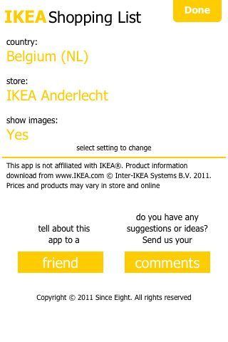 IKEA Shopping List is geen officiële applicatie van de IKEA, maar is gemaakt door een onafhankelijke derde partij die wat geld wil binnenhalen met de advertenties die onderin beeld staan. Daarvoor heeft ontwikkelaar Since Eight de moeite genomen om de prijzen van allerlei IKEA-vestigingen wereldwijd te indexeren en te verwerken in de applicatie. Nederland en België zijn in ieder geval compleet vertegenwoordigd. Behalve de juiste prijzen houdt de app ook per vestiging de juiste rekken in het magazijn aan. Het idee is dus dat je precies weet waar je moet zijn in het magazijn als je de app in je hand hebt.