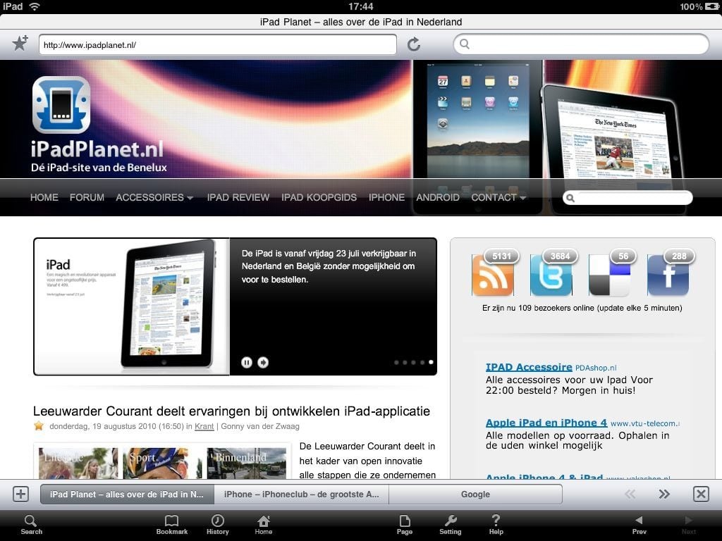 Verder kunnen nog geen links naar de AppStore geopend worden, dus iphoneclub en ipadclub kun je beter nog even via Safari bezoeken…