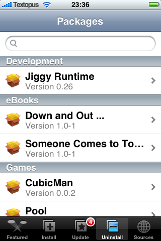 Een andere welkome update is dat je na het installeren van applicaties niet meer ’teruggegooid’ wordt naar het ‘Slide To Unlock’-scherm, maar gewoon naar het Springboard. De totale lijst van wijzigingen in Installer 3.11 is als volgt: