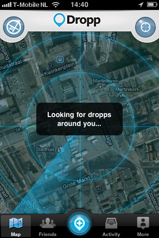 De applicatie biedt bovendien de mogelijkheid om je persoonlijk aan locatiegebonden berichten te herinneren. Voordat je een bericht of foto achterlaat, kun je instellen wie die mag zien: jij, iedereen, of alleen vrienden? Je hoeft niet perse op de locatie in kwestie te zijn om er een bericht achter te laten. Op een Google Maps-kaart kun je de rode markering verslepen of een adres invullen om het bericht op een andere plek achter te laten. Als je een bericht wilt lezen of een foto wilt zien, moet je wél in de buurt van de Dropp in kwestie zijn. Voor wie interesse heeft: de vermoedelijk eerste Dropp in Nederland is in het centrum van Groningen op te halen. 😉
