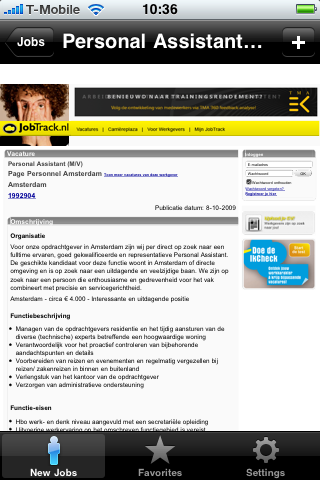 Wel aardig bedacht. Maar 2,99 vind ik toch een beetje aan de hoge kant voor een app die informatie verzameld van andere sites. Een handige functie zou ook zijn dat je je CV gelijk door zou kunnen sturen.