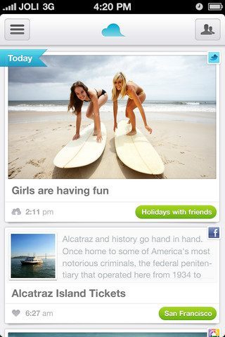 Je favoriete foto’s in Instagram, opmerkelijke artikelen die je hebt (gere)tweet op Twitter of foto’s die van je gemaakt zijn op Facebook. Met Jolicloud kan je ze niet alleen overzichtelijk onder elkaar zien, maar ook als kant-en-klare pakketjes aanbieden aan andere, bevriende gebruikers van de app. Zo kan je bijvoorbeeld zomaar stuiten op een verzameling van de meest zeldzame auto’s die een bevriende autoliefhebber op Facebook zelf weer heeft gespaard op andere netwerken.