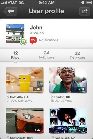 Klip is een app waarmee je eenvoudig video’s kan uploaden en kan delen op de door jouw gewenste sociale netwerken. Nadat je een video hebt geschoten of uit je fotoalbum hebt geselecteerd, kun je meteen aangeven naar welke sociale media de video doorgezet wordt: Twitter, Facebook, YouTube en het vertrouwde e-mail behoren tot de mogelijkheden. Maar behalve de video’s door te plaatsen en aankondigden, worden ze in Klip ook gedeeld in het sociale netwerk dat in de app zit. Dat principe en de uitwerking laten zich goed vergelijken met Instagram.