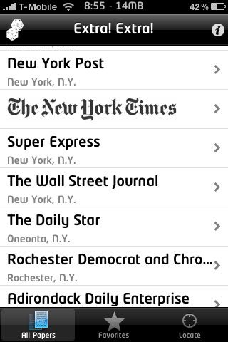 “Extra! Extra!” werd er vroeger door de krantenverkopers op straat geroepen als er breaking news was en er een extra editie van de krant uit was gekomen. Tegenwoordig ontvangen we breaking news gewoon direct op ons mobieltje in de vorm van bijvoorbeeld een pushbericht. De nieuwe applicatie Extra! Extra! probeert het verleden en het heden samen te brengen door een overzicht te bieden van meer dan 800 voorpagina’s van kranten wereldwijd op je iPhone. Natuurlijk zitten daar bekende kranten bij als de New York Times of The Guardian, maar je kunt bijvoorbeeld ook de Daily Al Bayan uit Dubai lezen als je wilt.