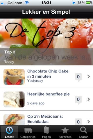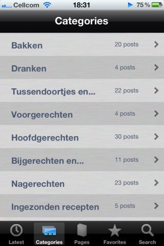 De app belooft haar gerechtensectie elke dag aan te vullen en dat is een fijne gedachte. Niet dat het aanbod nu heel karig is: er zijn meer dan 30 hoofdgerechten, 23 toetjes, 22 tussendoortjes en 20 te bakken etenswaren voorhanden met daarnaast nog meer categorieën. Elk recept staat met een foto afgebeeld op een pagina waarop de benodigdheden en de bereidingswijze worden beschreven. Met een knop in het menu onderin het scherm kan je tekstgrootte direct aanpassen. Ook kan je recepten tot favoriet bombarderen. Het hoofdmenu laat altijd zien wat de laatst toegevoegde tips zijn.