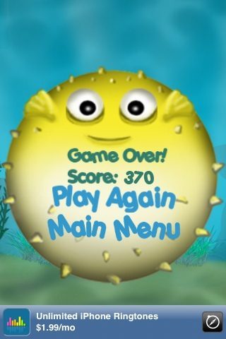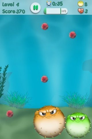 Als de rode vijand tijdens het opblazen van de vis tegen jouw groeiende vis aankomt, dan explodeert je vis en ben je hem kwijt. Ook gaat er een leven af, waarvan je er drie hebt. Het gaat in het spel om de tijd: er loopt een timer mee. Binnen de tijd moet je een bepaalde percentage van het ‘aquarium’ gevuld hebben met blowfishes. Als je dat niet lukt is de game over. Per level komt er een rood, rond visje bij, waardoor het steeds moeilijker wordt.