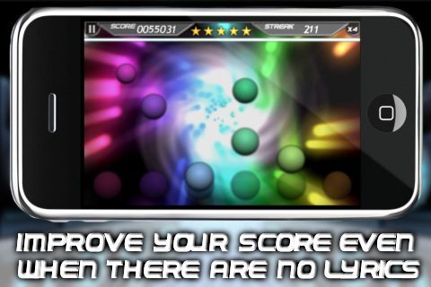 In Tap Tap Revenge moet je op de maat van de muziek op de juiste knoppen drukken. Maar het kan altijd een stapje moeilijker. In Lyric Legend draait het niet alleen om de maat van de muziek, maar ook om de songteksten. Zorg dat je op het juiste woord klikt voordat het woord is uitgesproken, anders verlies je punten.