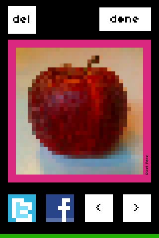 We hebben laatst al een iPhone apllicatie besproken die de aloude GameBoy-camera simuleerde en nu is er weer een nieuwe app die foto’s omzet naar een ouderwetse pixelkwaliteit. Omdat het kan, waarschijnlijk. In Pixel Face kun je zelf bepalen hoe grof de pixel moet zijn en je kan zelf de kleur van het kader om de foto instellen. Geinig is dat de gehele app in pixelstijl is uitgevoerd, inclusief de deelknoppen voor Twitter en Facebook.