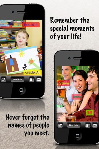 Meteen na het nemen van een foto kan je aan de slag met de notities erop. Klik op het scherm om een tekstvak aan te maken, typ de tekst, stel de kleur in en je kan de positie veranderen om de notitie op de goede plek te zetten. Er kunnen meerdere notities op een enkele foto staan.