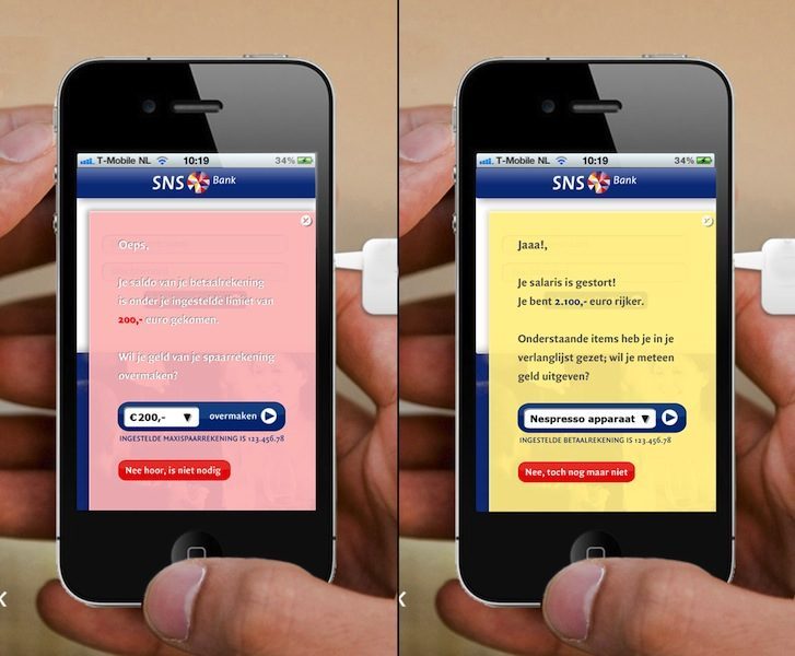 In mei dit jaar schreef de SNS Bank een ontwerpwedstrijd uit om ideeën te verzamelen voor een nog te ontwikkelen iPhone-applicatie voor mobiel bankieren. De opdracht luidde: ‘bedenk en visualiseer mobiel bankieren via de iPhone’. De wedstrijd liep van 16 mei tot 16 juni. In totaal werden er meer dan honderd ontwerpen ingestuurd, waaruit een jury de drie beste inzenders met een prijs heeft beloond. De hoofdprijs, een cheque ter waarde van 1000 euro, ging naar de 37-jarige Leonie Sijtsma uit Utrecht, omdat haar ontwerpen volgens de jury diverse interessante eigenschappen combineren. Kees Koenen en Dennis Blarinckx gingen met de tweede en derde prijs naar huis, respectievelijk 250 euro en 100 euro.