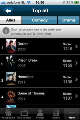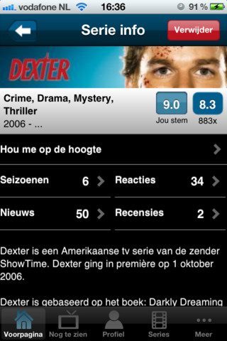 Helaas lust de app niet alle pagina’s handig naar elkaar door. Zo kan je vanuit een losse recensie of los nieuwsbericht niet even doordrukken naar de seriepagina. Daar kom je alleen terecht vanuit het serie-overzicht, of vanuit de nieuw aanwezige lijst met favoriete series.