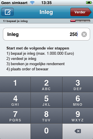 - Invoeren van de hoeveelheid geld die je wilt beleggen.