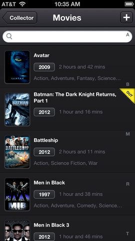Movie Collector iPhone iPod touchDe films die je hebt of de films die je hebt gehad. De films die je misschien nog wilt kopen. In de Nederlandse app Movie Collector kan je ze op een rij zetten en vervolgens terugkijken per steekwoord, genre, kijkwijzer, acteurs, regisseurs en of je ze al dan niet (uit)geleend hebt. Movie Collector voorziet de films zelf van de informatie, een filmposter voor in het overzichtsscherm en met ingang van de laatste update ook een trailer. Vanaf nu is er ook een gratis versie te downloaden.