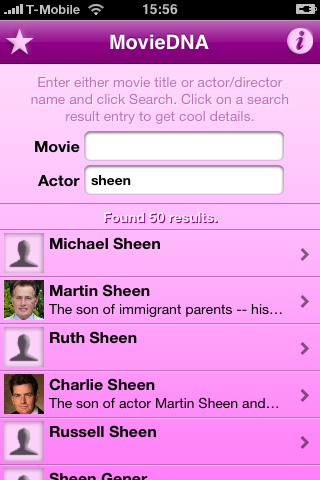 Voor de bekende filmwebsite IMDb.com was tot nu toe nog niet echt een goede iPhone-variant te vinden. Vaak linken deze mobiele websites uiteindelijk door naar de originele website, waardoor de informatie alsnog slecht te lezen is. MovieDNA brengt hier verandering in, en toont alle informatie netjes in de applicatie zelf. Met MovieDNA kun je allerlei details over een film, acteur of regisseur zoeken en overzichtelijk bij elkaar tonen. Het haalt zijn informatie van IMDb, Netflix, Rotten Tomatoes, Yahoo! en YouTube.