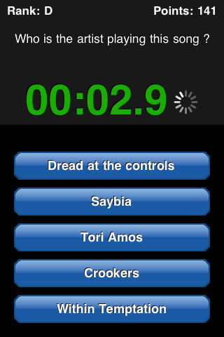 Ik vind het vrij irritant dat elk liedje vanaf het begin start, het is beter als er ergens in het midden wordt begonnen. Ik heb nu ‘Music Quiz’ die vind ik toch een stuk beter ookal is ie wat minder uitgebreid qua soorten vragen…
