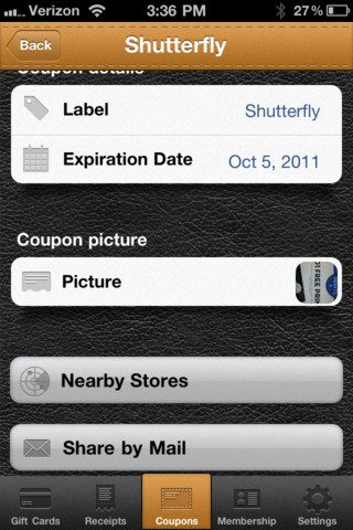 Wat natuurlijk helemaal handig zou zijn, is als hij (net als de Reminder app), in staat zou zijn om je te waarschuwen dat je nog een bon hebt zodra je in de desbetreffende winkel binnen stapt… want als je de bon vergeet, vergeet je waarschijnlijk ook de app te checken… Aan de andere kant, dat kan eigenlijk met de Reminder app zelf al wel…
