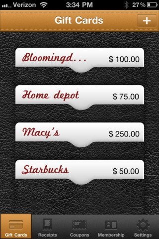 Ander voorbeeld: je weet niet welke cadeaus je op je verjaardag wilt hebben en krijgt daarom voor de zoveelste keer een kadobon. Onder het tabblad Gift Cards vul je een label in, het tegoed en de activeringsdatum. Ook kun je een foto van de voor- en achterkant van het bewijs maken, mocht je hem anders niet meer herkennen als je er later eens naar op zoek bent. Als de gegevens ingevuld zijn, verschijnt het item fraai als vakje in het lederen uiterlijk van de applicatie. Klik erop en je hebt de optie ‘Nearby Stores’. De app zoekt dan op Google Maps naar winkels en winkelomschrijvingen die overeenkomen met je labelnaam. Met de optie ‘Open in Maps’- kun je er meteen een route naar uitstippelen. Als een actie dreigt te verlopen, geeft de applicatie je een pushbericht.