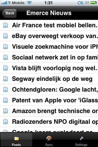 Met RSS kun je gemakkelijk het nieuws op tientallen websites per dag lezen. Op de desktop kan dat bijvoorbeeld via Google Reader. Voor de iPhone is er nu een native applicatie die gebaseerd is op Google Reader: de applicatie Feeds. Nu was er natuurlijk al de applicatie SmartRSS, maar daarin moet je je RSS-feeds handmatig invoeren. Je kunt niet uit een kant-en-klaar lijstje kiezen en het importeren van OPML-bestanden wordt in SmartRSS ook niet ondersteund. Bij Feeds hoef je alleen je gebruikersnaam en wachtwoord van Google Reader in te voeren.