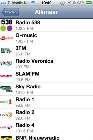 De applicatie bevat behalve landelijke zenders ook lokale omroepen. Aldus heeft Assen wel RTV Assen en RTV Drenthe in de lijst staan, maar geen Radio Veronica omdat die ter plekke een waardeloos signaal heeft of omdat de frequentie niet bekend is. Helaas kun je vanuit de applicatie niet direct naar muziekzenders luisteren via een stream om dat eventuele gemis op te vangen.