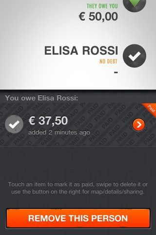 Sommige apps specialiseren zich in een kleine, bijzondere functionaliteit en doen dat vervolgens met visuele verve. Zo zijn er al best wat to-do lijstjes die van het iPhone-scherm spatten. PayMeBack is de nieuwste applicatie van de Nederlanders Rick Waalders en Sjoerd Perfors van FrozenTulip, die eerder al met Flitsmeister kwam. Het legt zich toe op één doel: op een rijtje zetten aan wie je geld leent. Dat doet de app in een strakke, oranje-grijze layout.