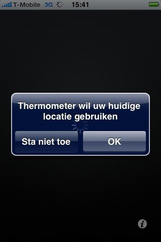 Gonny vergeet in zijn reactie wel één en ander. In ieder geval het belangrijkste: deze applicatie Ãs in feite een thermometer, en hij bepaalt dan ook zelf wáár de eigenaar van de iPhone zich bevindt, om daarna de temperatuur ter plaatse vast te stellen. Niets extra invoegen van plaatsen, dat is met deze prettige applicatie niet meer nodig. En een handige toevoeging dus aan het iPhone applicatie arsenaal.
