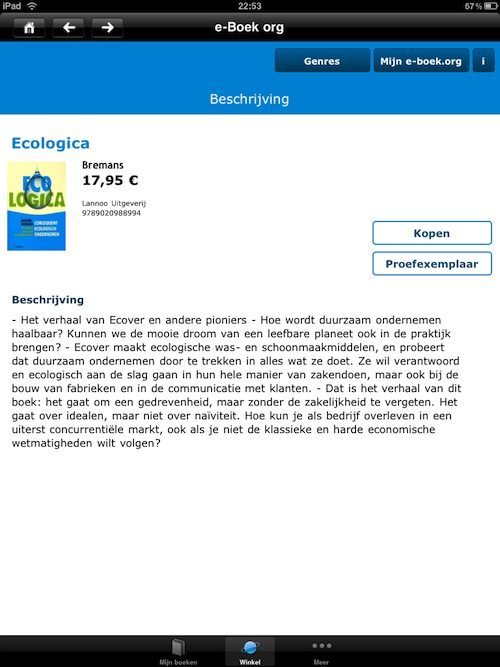 E-boek.org is een mooie aanvulling op het toch wat magere huidige aanbod, mits je bereid bent om een paar euro meer te betalen. De app van e-boek.org is universeel, dus ook op de iPhone te installeren.
