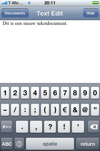 Het programma bestaat uit vier onderdelen: iSpreadsheet, Text Editor, een iPhone-bestandsbrowser en Google Sync. Mocht je bang zijn dat je later toch nog voor updates moet betalen: geen stress, alle toekomstige updates zijn gratis dus reden te meer om van de introductie-actie te profiteren. Maar toch valt de applicatie een beetje tegen. Als tekstverwerker stelt Documents niet zoveel voor: er zijn geen opmaakfuncties, je kunt het lettertype niet wijzigen en de applicatie reageert relatief traag. Het openen van geïmporteerde Word-documenten vanuit Google Docs is ons nog niet gelukt. Wellicht werkt het alleen met documenten die geen opmaak hebben.
