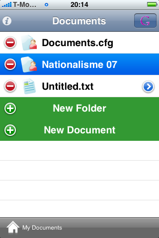 Tipgever Stephan ontdekte een interessante nieuwe applicatie, die bovendien nog gratis is ook: Documents. Later zal de applicatie €3,99 gaan kosten. Documents is een Office-pakket waarmee je tekstbestanden en spreadsheets kunt bewerken en beheren. Het werkt zowel online als offline waarbij het laden van de documenten op een slimme manier is opgelost: via Google Docs. Nu is er natuurlijk al langer MiGhtyDocs, waarmee je ook Google Docs kunt inlezen. Die heeft echter niet de mogelijkheid om bestanden te bewerken. In Documents zou dat wel mogelijk moeten zijn, al is de ontwikkelaar er niet helemaal duidelijk over. De bestandsformaten .doc, .docx, .xls en .xlsx worden beperkt ondersteund en het is ook mogelijk om bestanden in Numbers-, Open Office- en Notepad-formaat in te lezen.